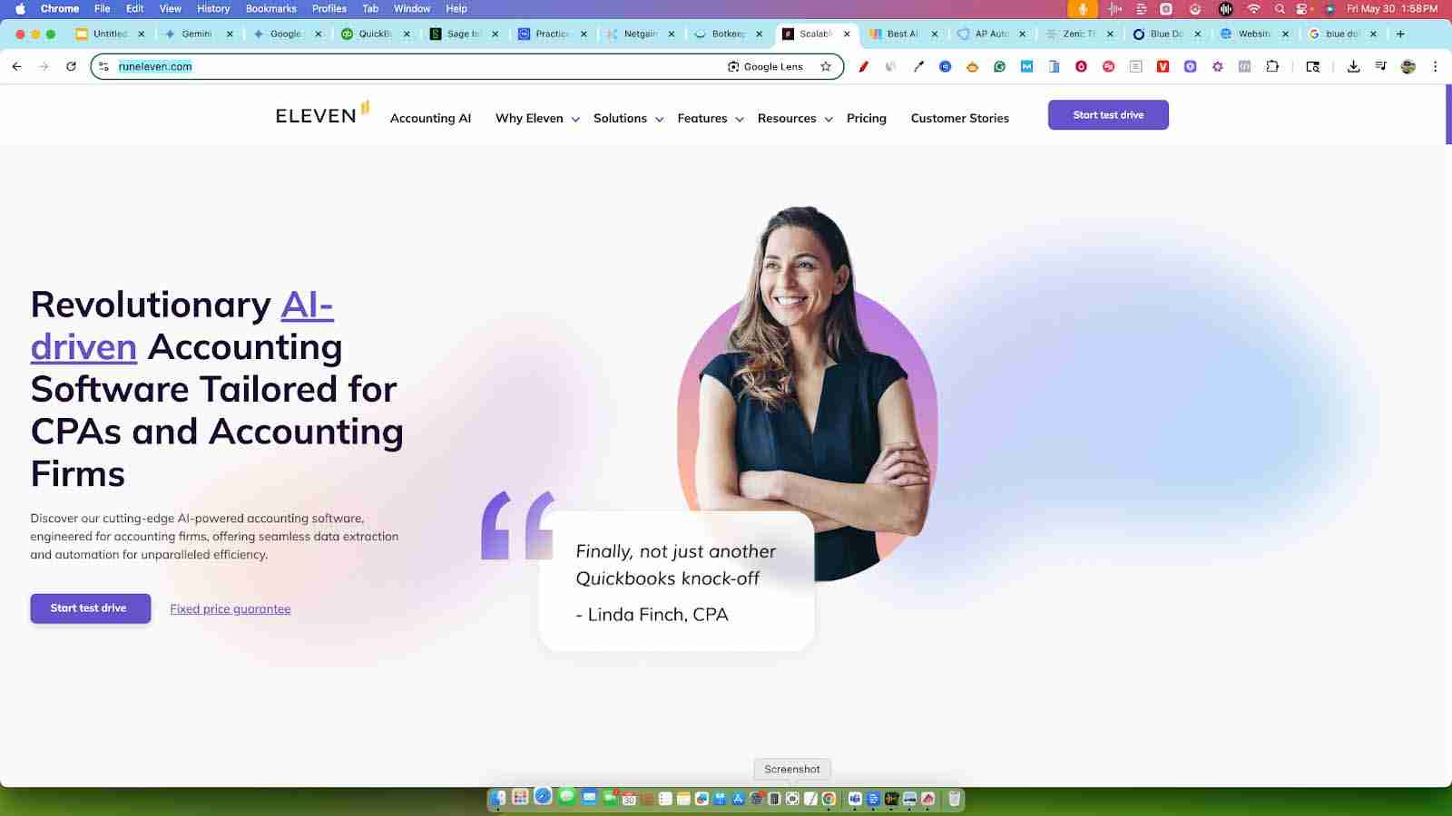 Eleven, found at runeleven.com, is a more specialized, up-and-coming player. They see around 11,000 website visitors a month, indicating they are a smaller company. However, they are specifically marketing themselves as "revolutionary, AI-driven accounting software tailored for CPAs and accounting firms." So, like TaxDome, their focus is on the professional accountant, not the DIY business owner.