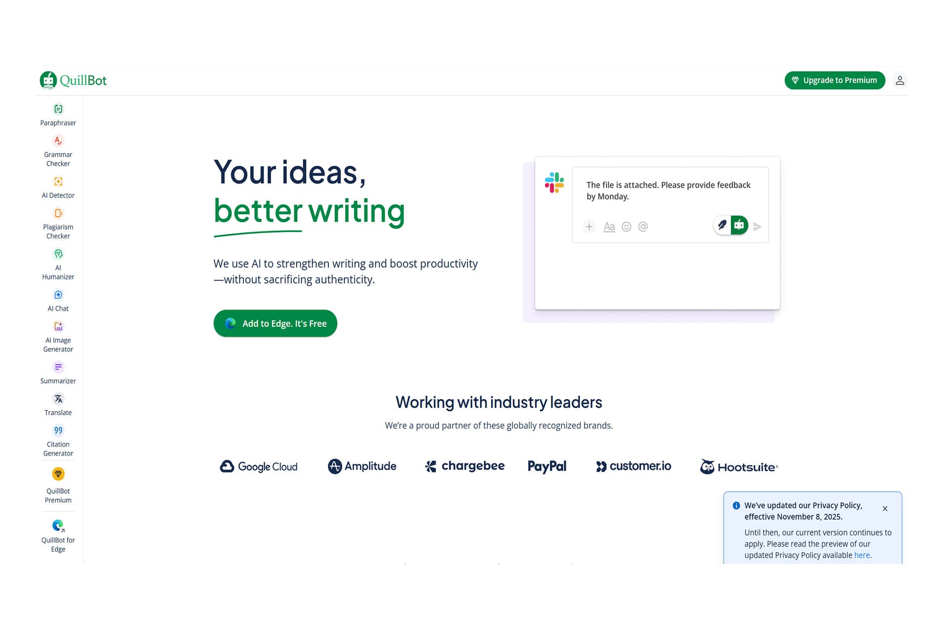 - Quillbot – Best for paraphrasing and editing