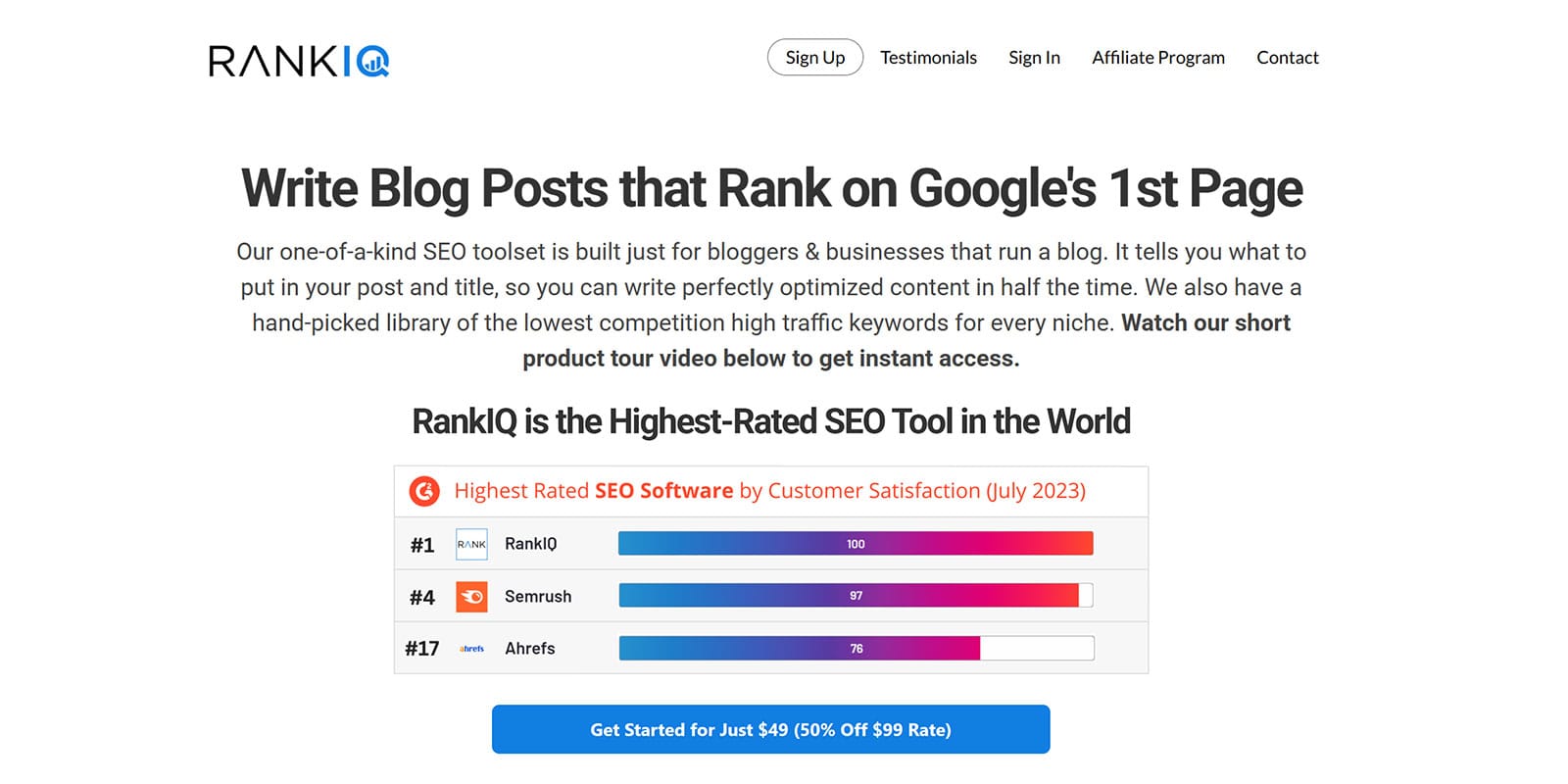 I have many subscriptions and tools for SEO, keyword research, niche finding and so forth. If you are a beginner and need a tool that will move the needle for you and does keyword research, niche research, content optimization, and analytics, RanklQ is my #1 recommendation. You can get started for just $49. Its a no-brainer.